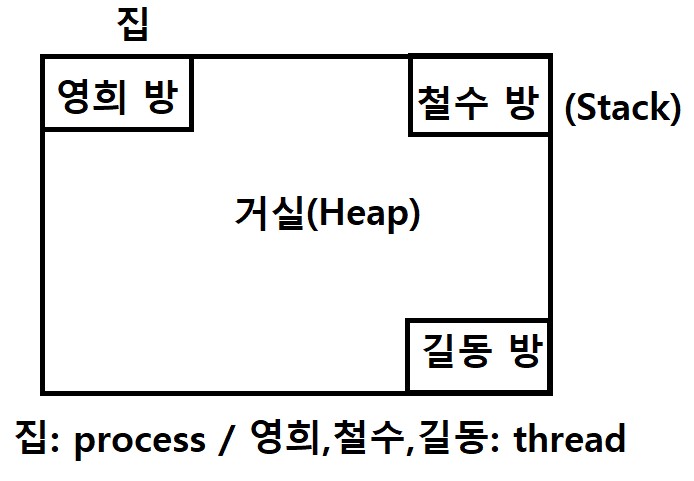 - 프로세스에 속한 모든 스레드는 프로세스의 가상 메모리로 공간이 제약된다